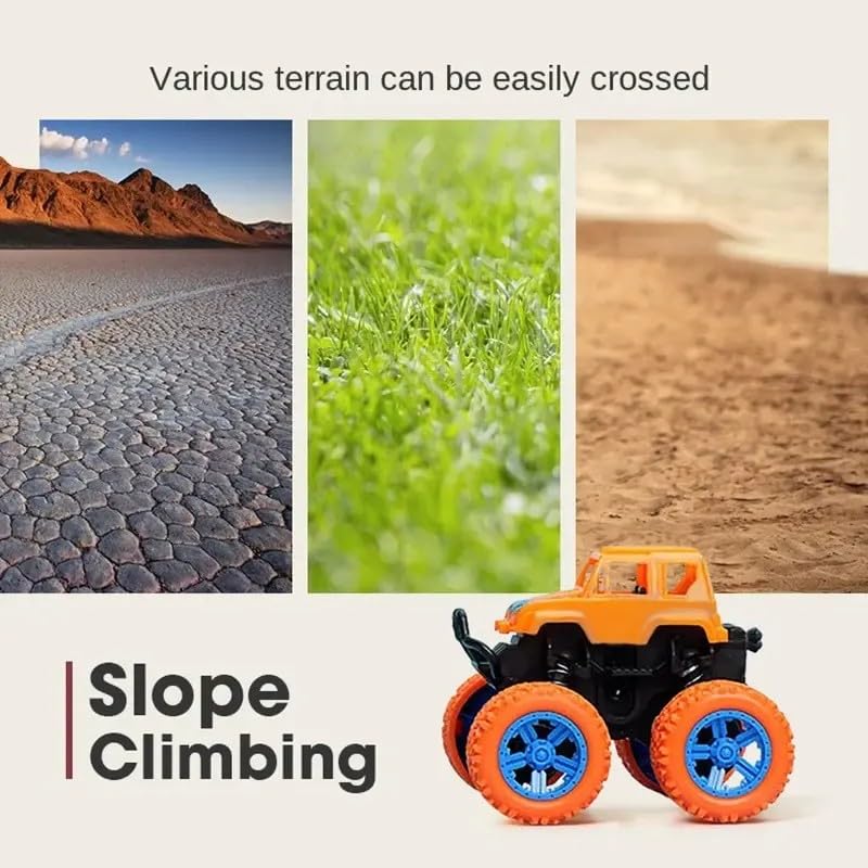 Details: Get ready for action-packed fun with these Mini Monster Truck Toy Cars! This exciting pack includes 4 friction-powered 4WD stunt vehicles designed for high-energy play. Just push and let go—no batteries needed! Watch them zoom forward, perform thrilling 360° spins, and conquer all kinds of surfaces with their rugged wheels. Built with durable, child-safe materials and vibrant multicolor designs, these mini monster trucks are perfect for toddlers and young kids. Whether it's indoor races or outdoor adventures, these push-and-go trucks keep little ones entertained while promoting hand-eye coordination and motor skills. Perfect as a birthday gift or a fun surprise, these toy cars are sure to delight kids ages 3 and up.